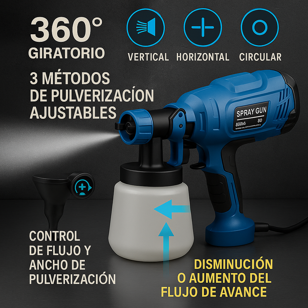 Tiene una capacidad de 800 mililitros, suficiente para pintar superficies grandes sin recargar seguido,